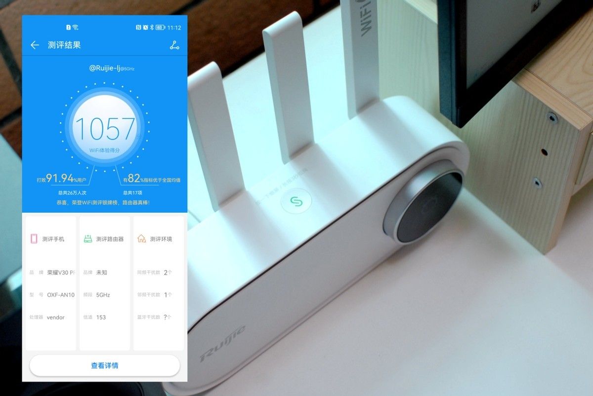 既然是路由器,一些常规的测试我们还是有必要测一下的,通过WIFI测评大师可以看出锐捷小白路由器的体验得分为1057,有82%的指标优于全国均值,整体表现令人满意。