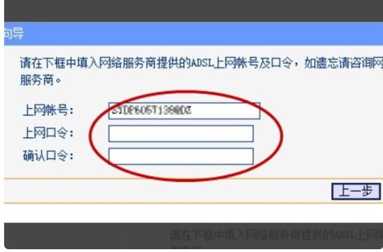 6、紧接着下一步输入自己的网上帐号和密码(就是你开通网线时运营商给的网上帐号和密码)。