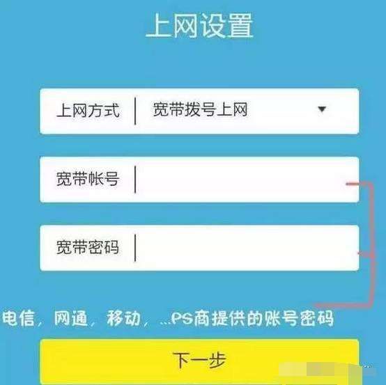 4.登录路由器后,就可以进入上网设置,在选择上网方式,一般是PPPoE或宽带拨号上网也可以选择让路由器自动选择,然后输入网络提供商给你的宽带账号和密码,点击下一步。