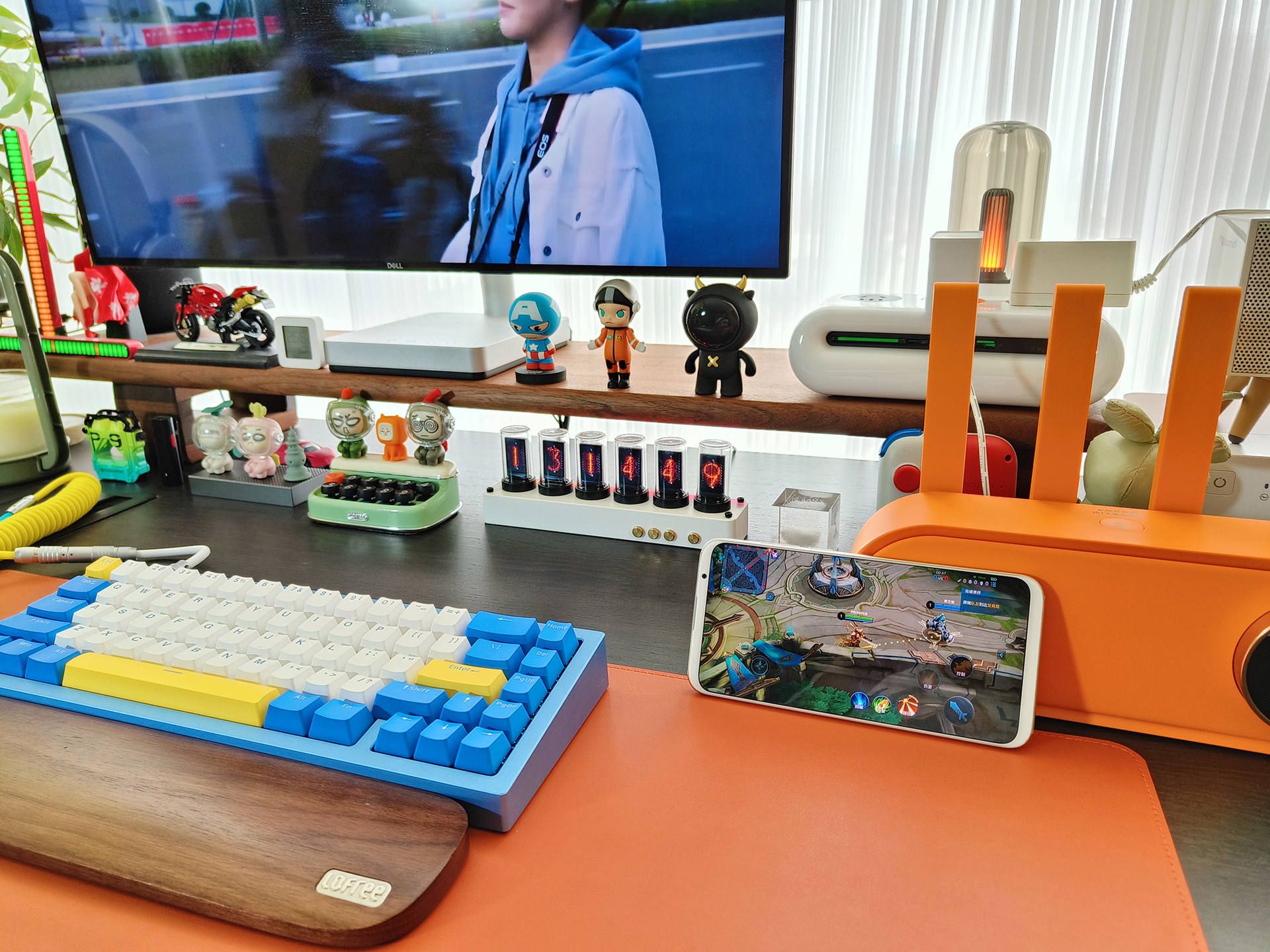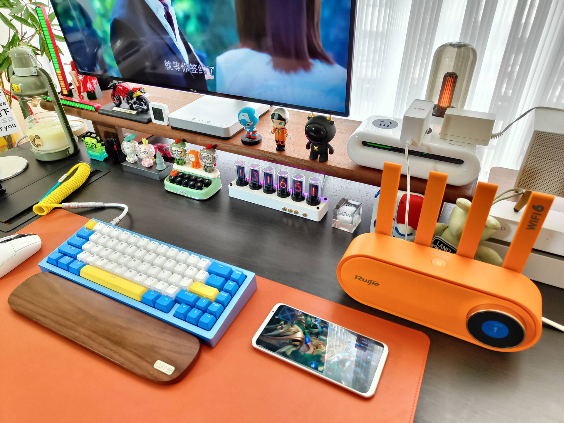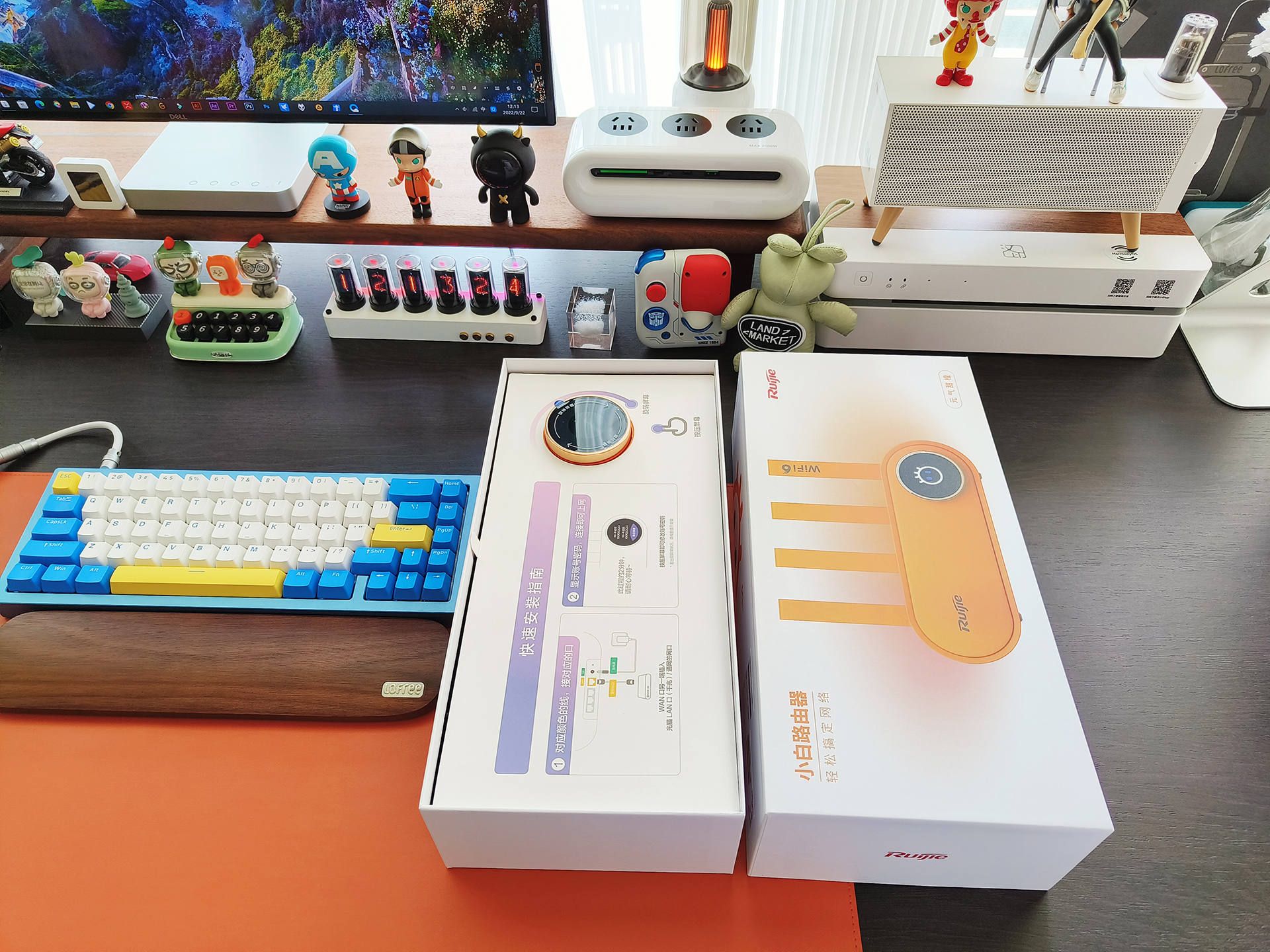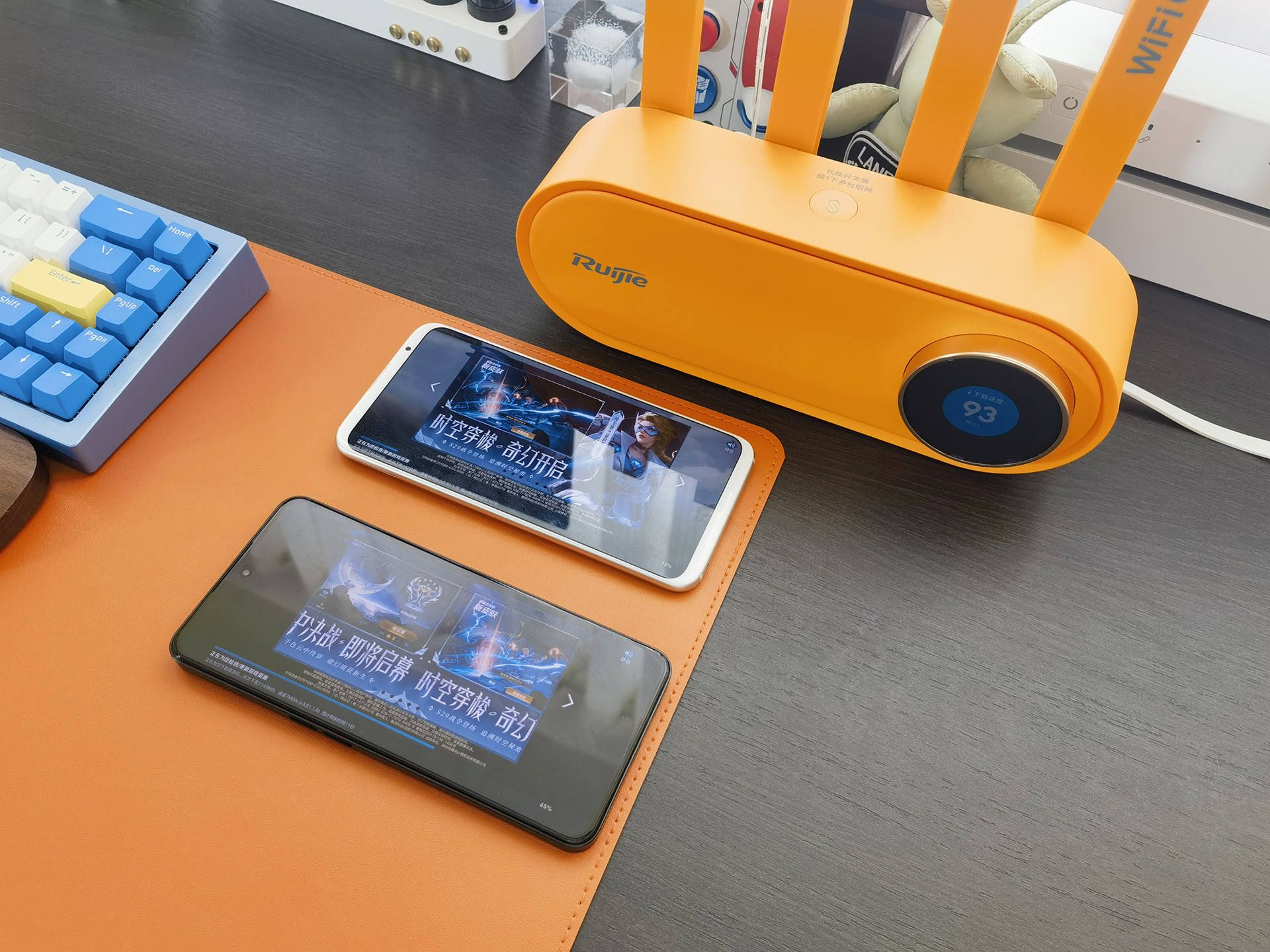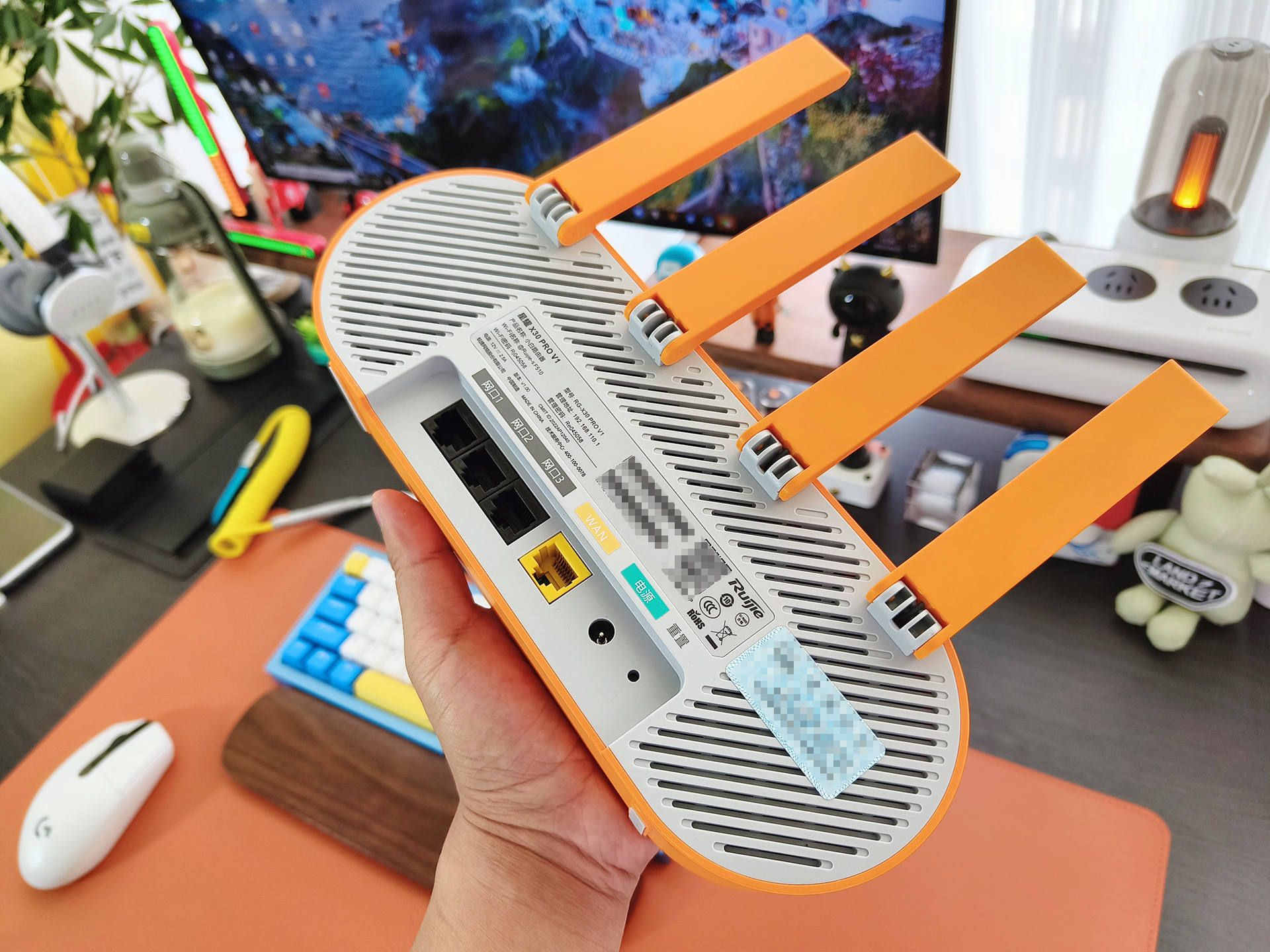 全家福方面,除了路由器主体外,还赠送一根网线、还有适配电源以及说明书,V叔选的是活力甜橙配色,说实话这个配色很耐看,作为亮色系,放在桌面也是非常好看的,和家居环境能很好的融入。