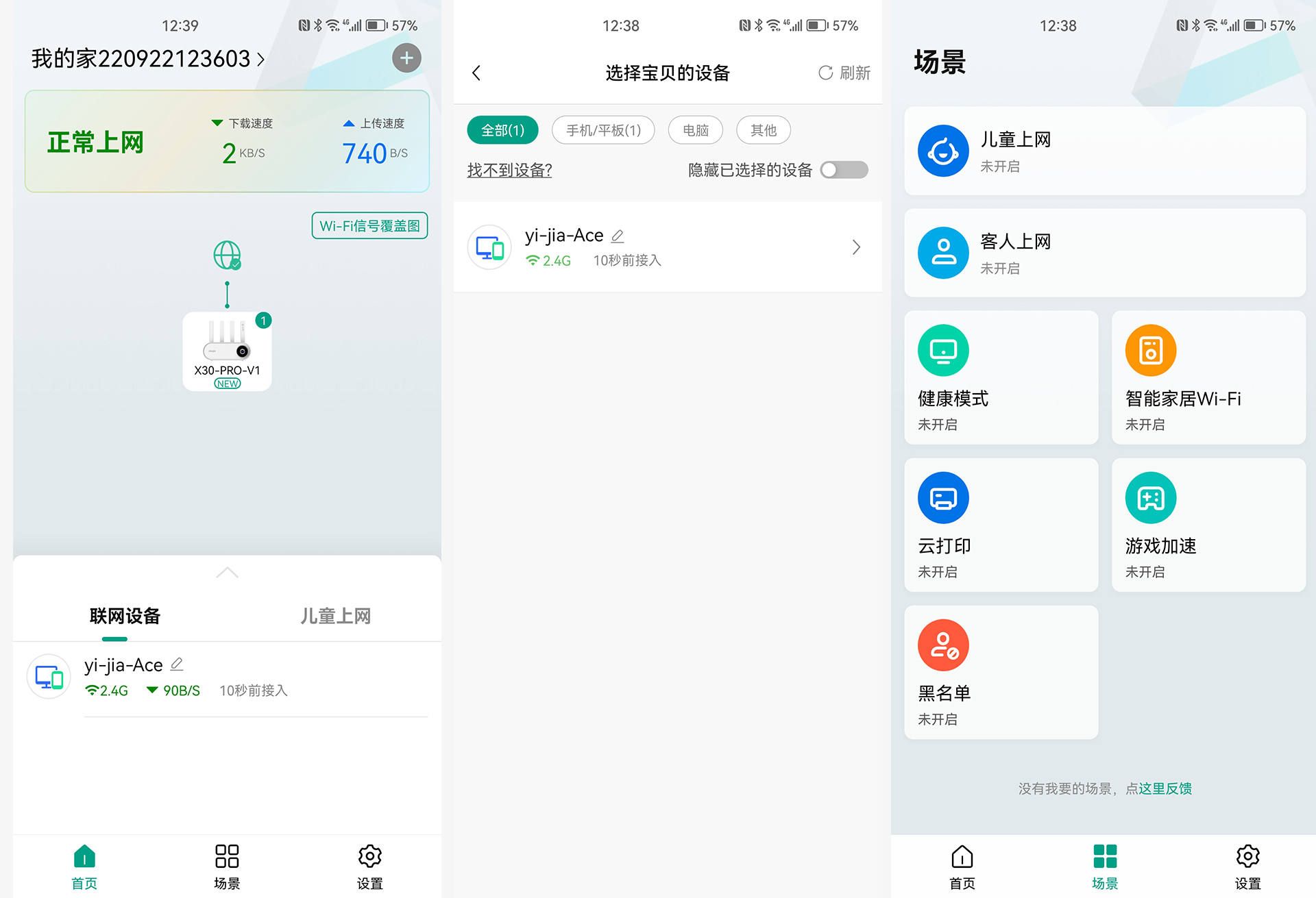 通过“锐捷星耀”APP,还可以设置更多功能,比如健康模式、智能家居Wi-Fi,云打印、游戏加速,黑名单,另外还有客人上网场景,满足不同使用需求。无论是孩子,还是家里来的客人,都可以设定好上网的行为。让家里的网络变得安全可控,让孩子上网也更省心且放心。还有更多常见功能也可以通过APP来设置,比如:测网速、一键诊断、一键优化、整网重启、指示灯等等。