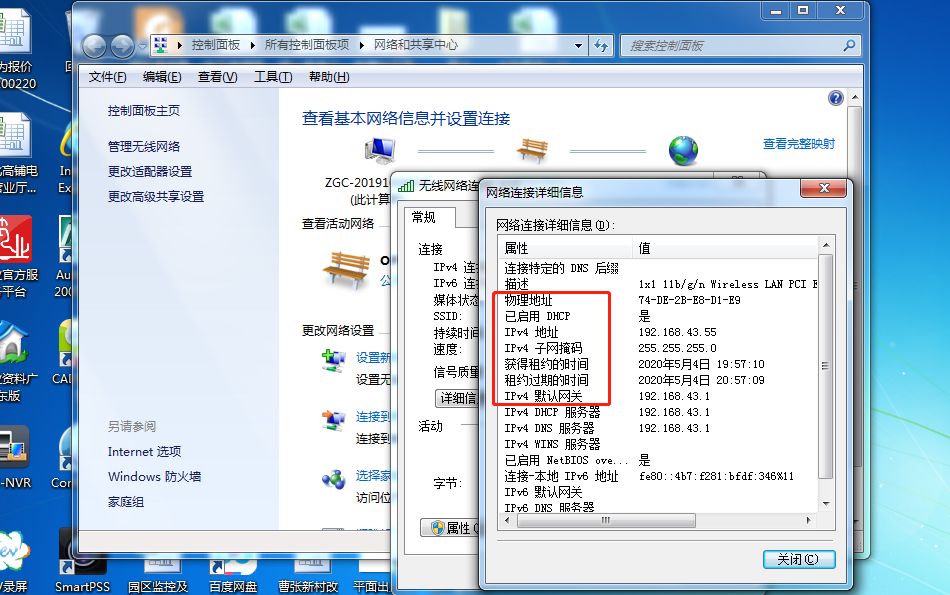 这上面就是IP地址,子掩码,和网关,本机电脑自动获取的IP地址就是192.168.43.55,下面我们在看下手机的。