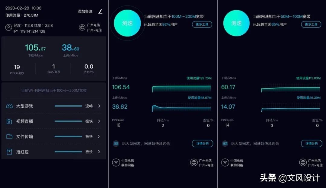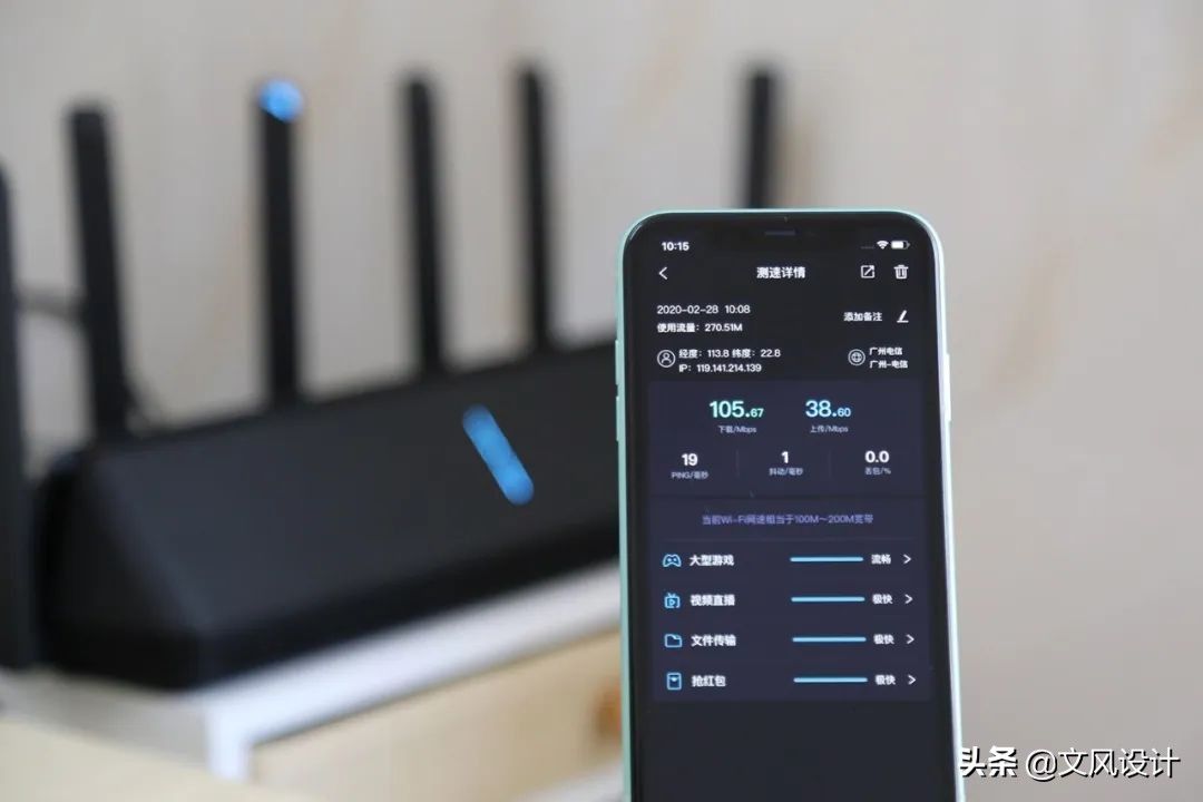 测试和感受WiFi 6,不是测试一台终端(例如手机)有多快,而是多台终端一起联网的时候,是否有显著的时延和拥堵。具体一台终端设备能跑到多快速率,取决于用户的宽带。