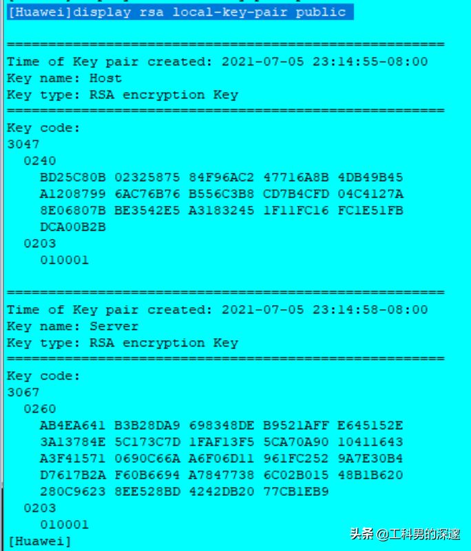 [Huawei]display rsa local-key-pair public
