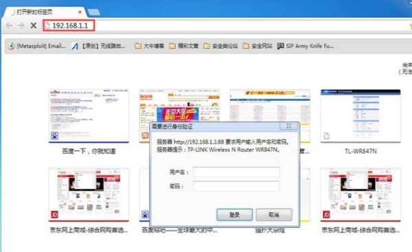 2、在电脑里面打开浏览器,在地址栏中输入192.168.1.1(这个地址在无线路由器的背面),账号密码都是admin,登录即可。