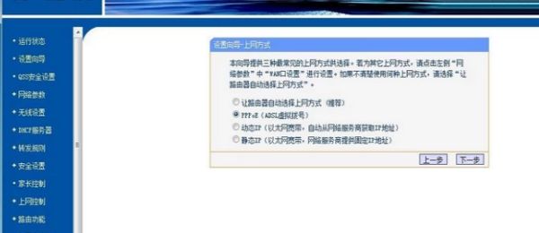 3、进入路由器我们选择设置向导;点击下一步上网方式我们选择PPPOE(ADSL虚拟拨号)