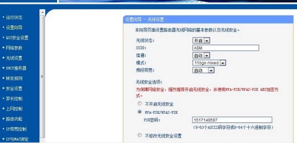 5、下面的两个第一个设置的是无线路由器的信号名称,这个无所谓可以不更改;第二个是无线路由器密钥;建议还是更改一下。