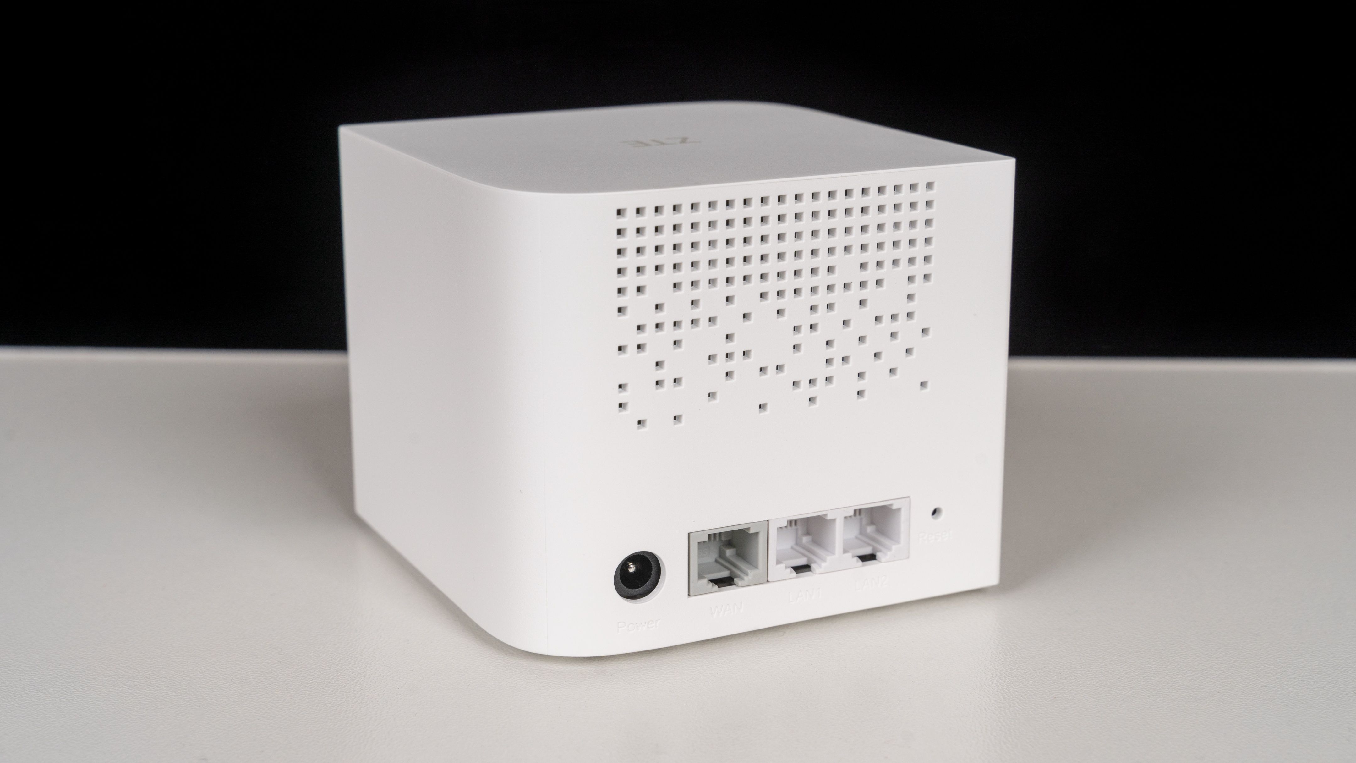 小方糖的接口集中在背部下方区域,从左到右分别是电源插孔、WAN口、两个LAN口以及Reset重置键,LAN口均能达到千兆规格,能满足大多数用户的家庭上网需求,加上它简洁小巧体积和百元内的预售价,性价比是不错的,在上方区域则是大面积散热孔,保证小体积下也能充分排出热量,以至于稳定工作。
