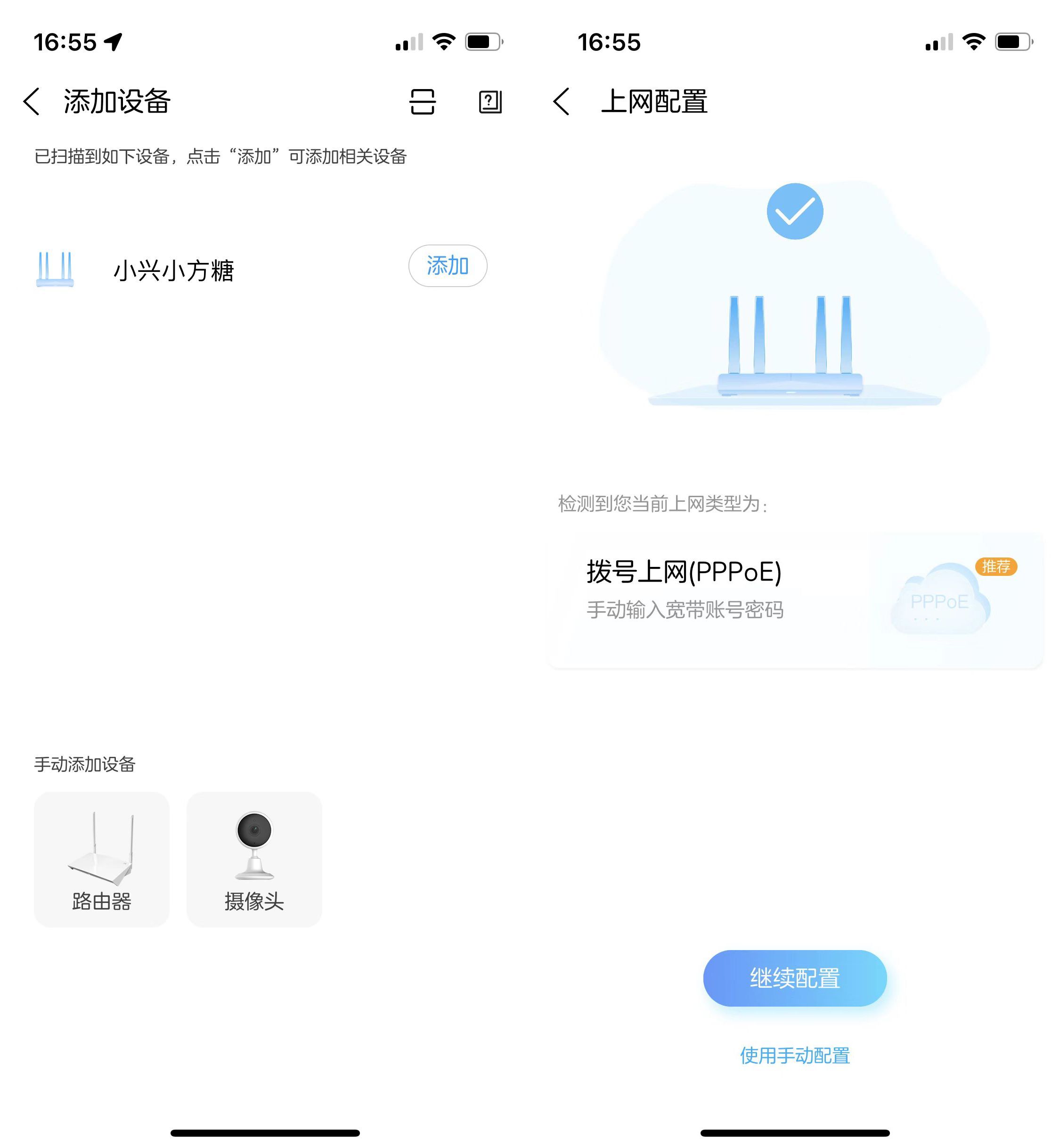 中兴智慧生活这款APP也集成了其他中兴产品的支持,可方便用户统一管理和使用。安装配置过程非常简单,添加小方糖设备后,就可以输入宽带账号密码了,APP会自动帮你检测上网类型。