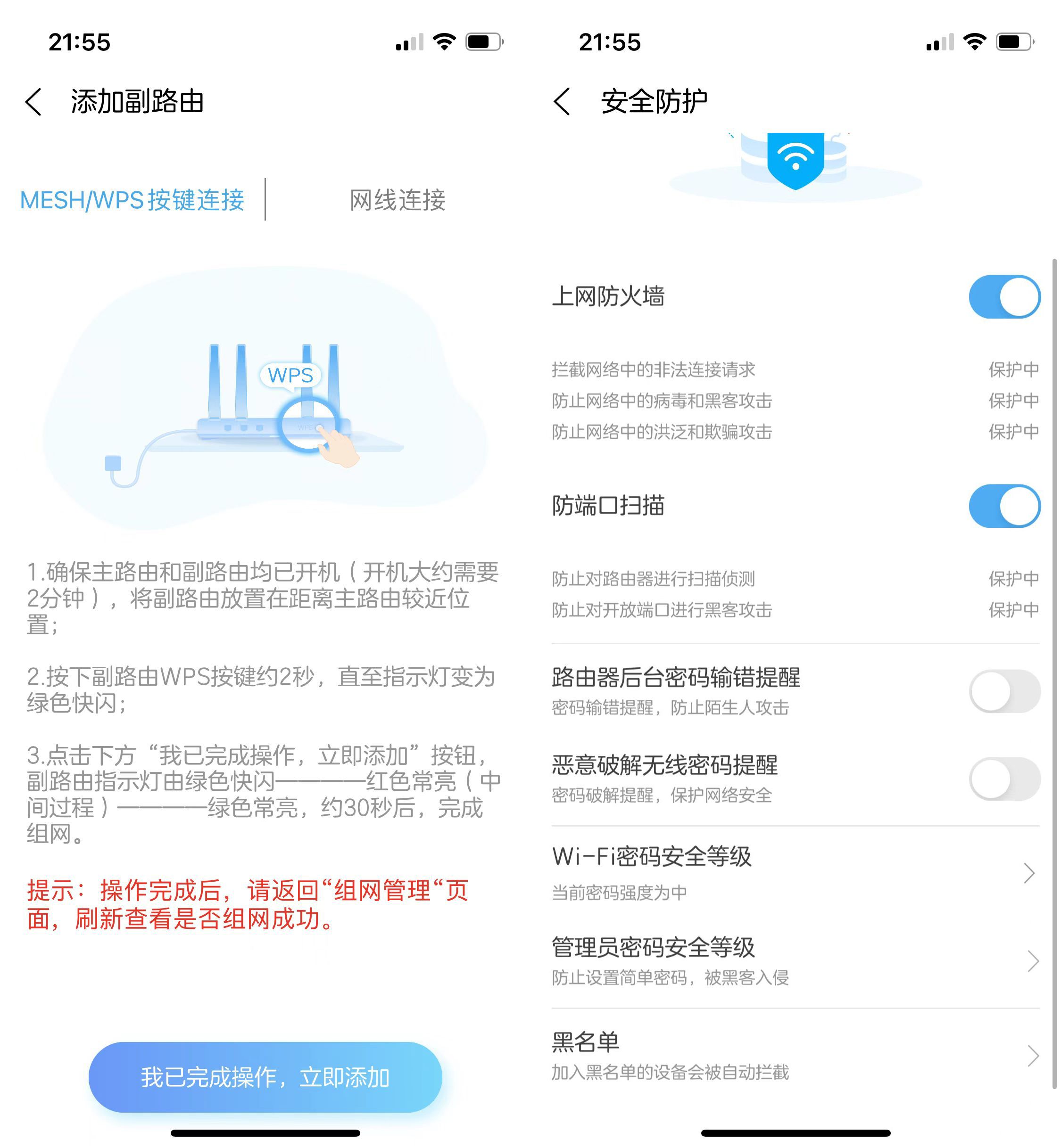 APP功能是一目了然的,并且设置起来很方便,比如说MESH组网就不需要复杂的流程,只需要通过MESH按键或者网线直连即可搭建完成,就算是对网络设置完全不了解的朋友,只需按照APP上的简要说明,一分钟也能搞定了,其他方面像访客Wi-Fi、上网管理、网络优化等功能,这些都能满足大众对一款路由器的基本需求。