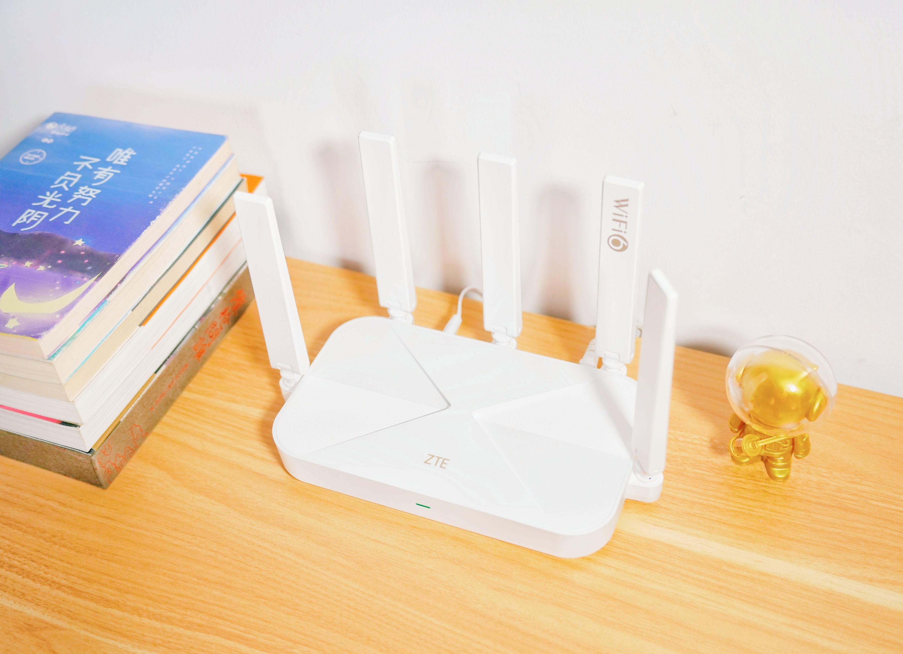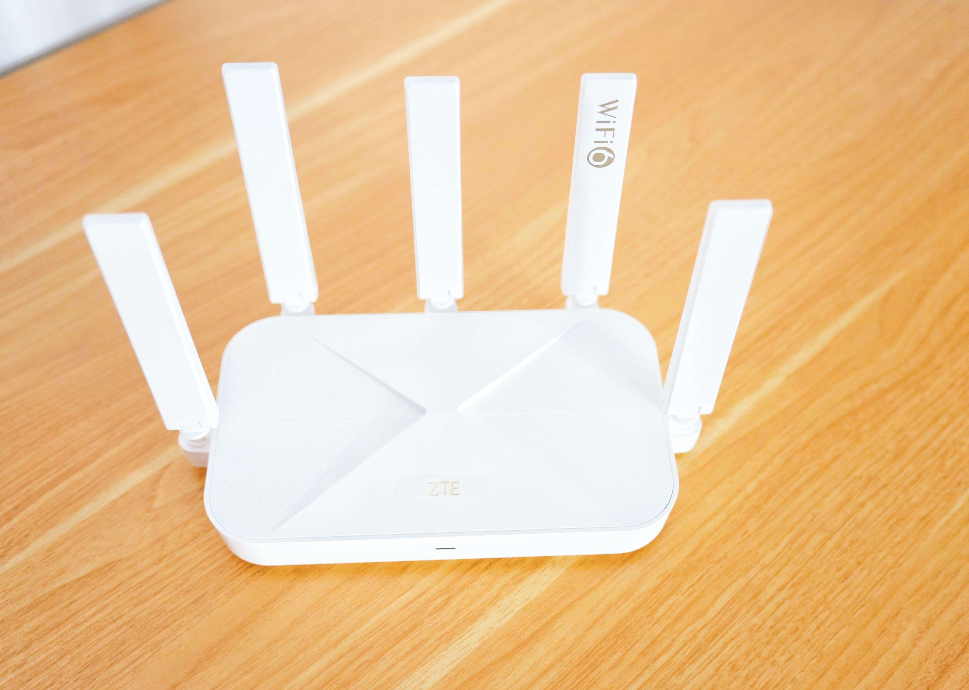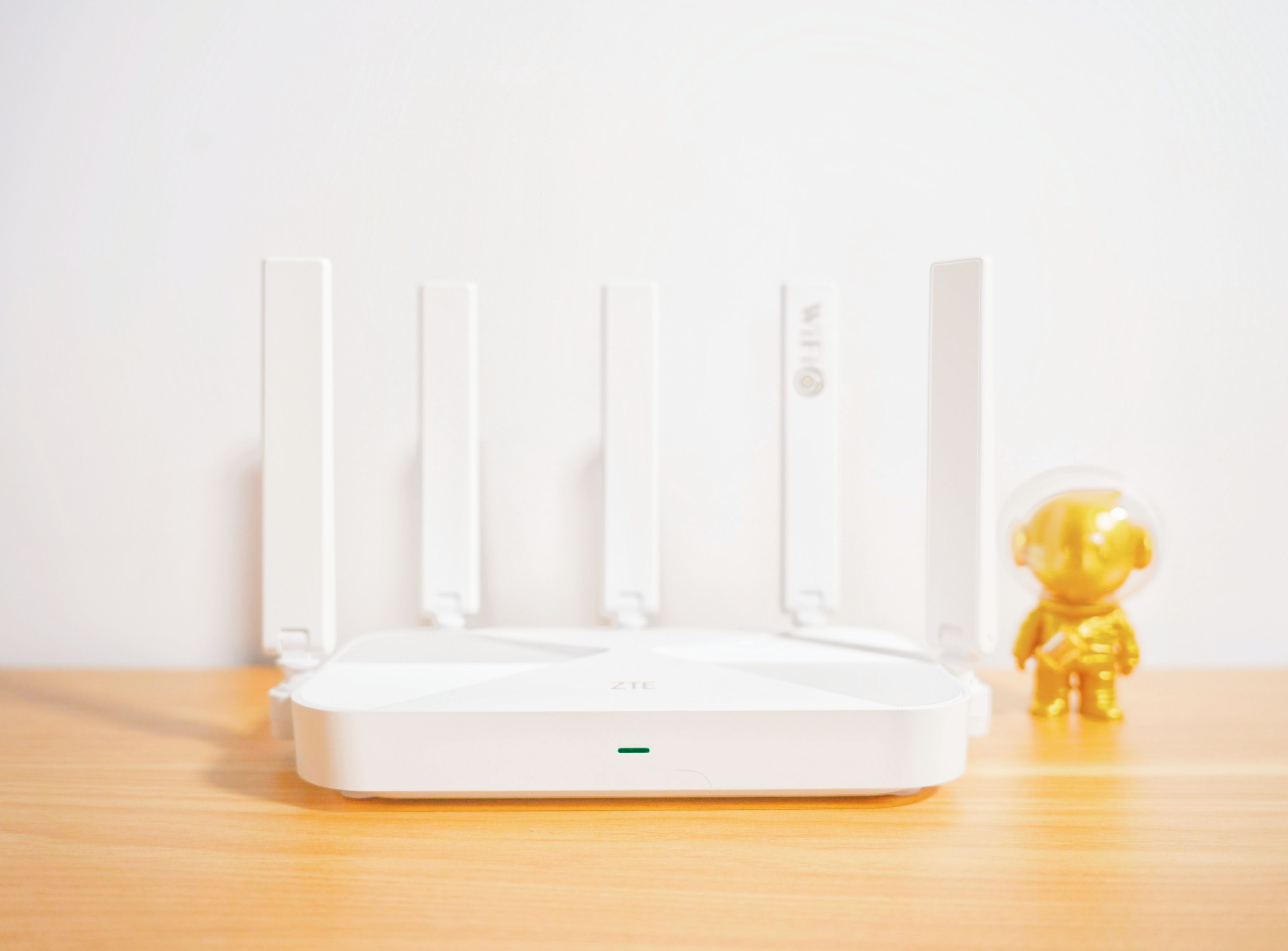 值得一提的是,中兴AX3000巡天版路由器在机身设计上还采用“时间沙漏”的设计造型,一显一隐甚是巧妙,抚摸上去的纹理所带来的触感也是极度舒适。且自带个性的“wifi 6”与ZTE LOGO,而信号灯也位于ZTE LOGO的正下方,一切正好恰如其分。此外,平日里摆放在桌面上也是一道不错的风景线。