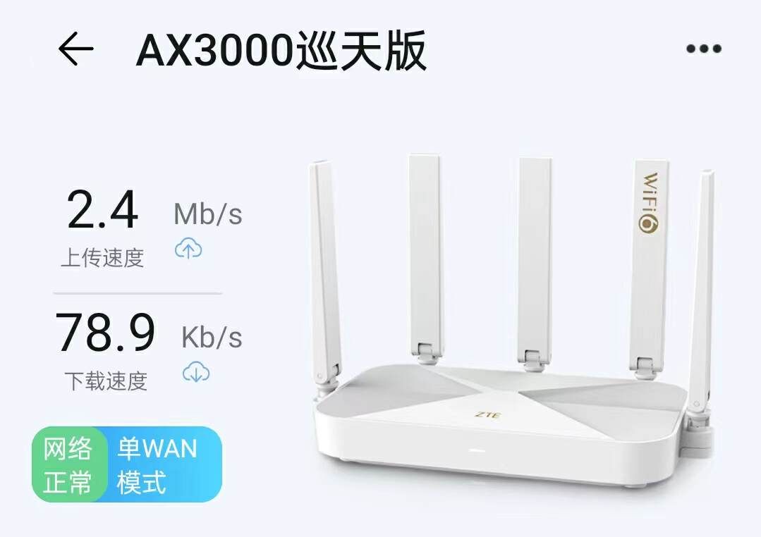 同时需要注意的是,中兴AX3000巡天版路由器作为一款wifi 6路由器,而wifi 6也成为了当下路由器产品的标配,因为相比Wi-Fi 5拥有高带宽、高并发、低时延和低功耗的四大优势。基于此上,中兴AX3000巡天版路由器有着超千兆内置交换芯片带来的高性能,实现了4万小时不间断烤机的高稳定,做到了50%芯片面积降低的高集成,达成了18.5%路由器功耗降低的低功耗。所以,中兴AX3000巡天版路由器稳的很啊!