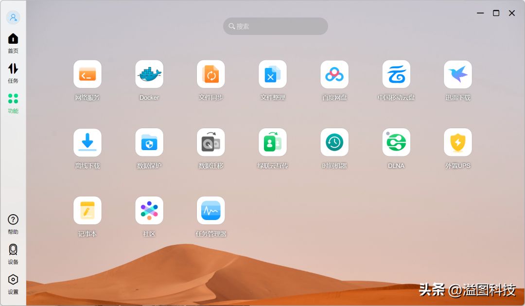 - 支持Docker,支持迅雷、百度网盘、离线下载、中国移动云盘,也能实现绿联云之间的高速互传。可玩性和功能性都不错。