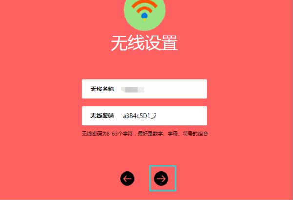 七、无线设置界面为自己的路由器设置一个WIFI热点的帐号与密码,点击“下一步”。
