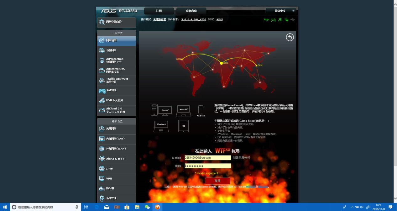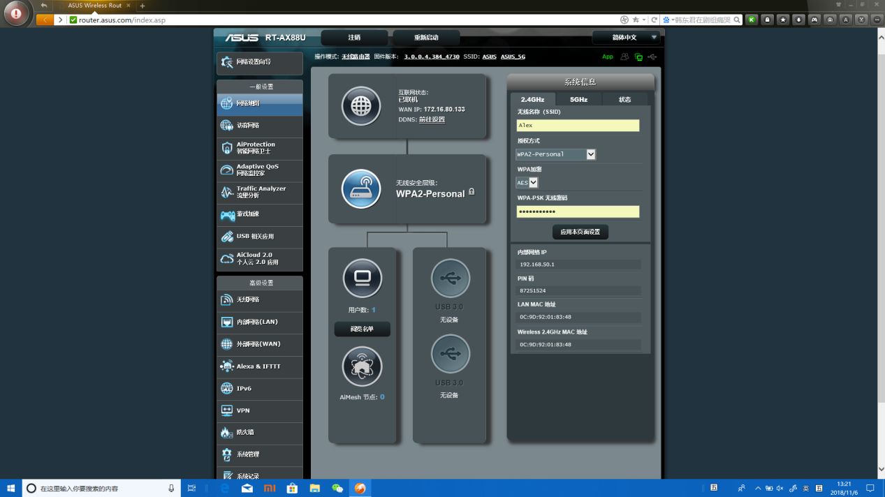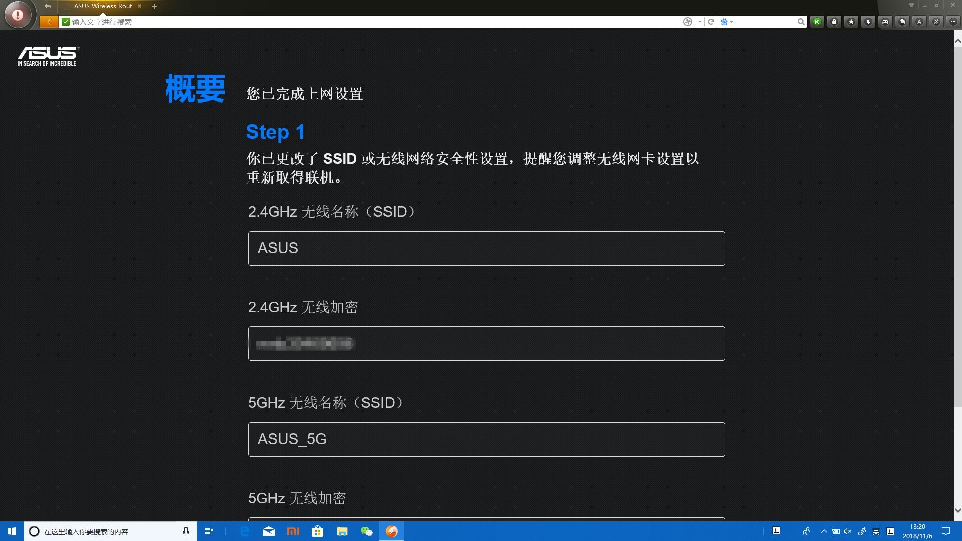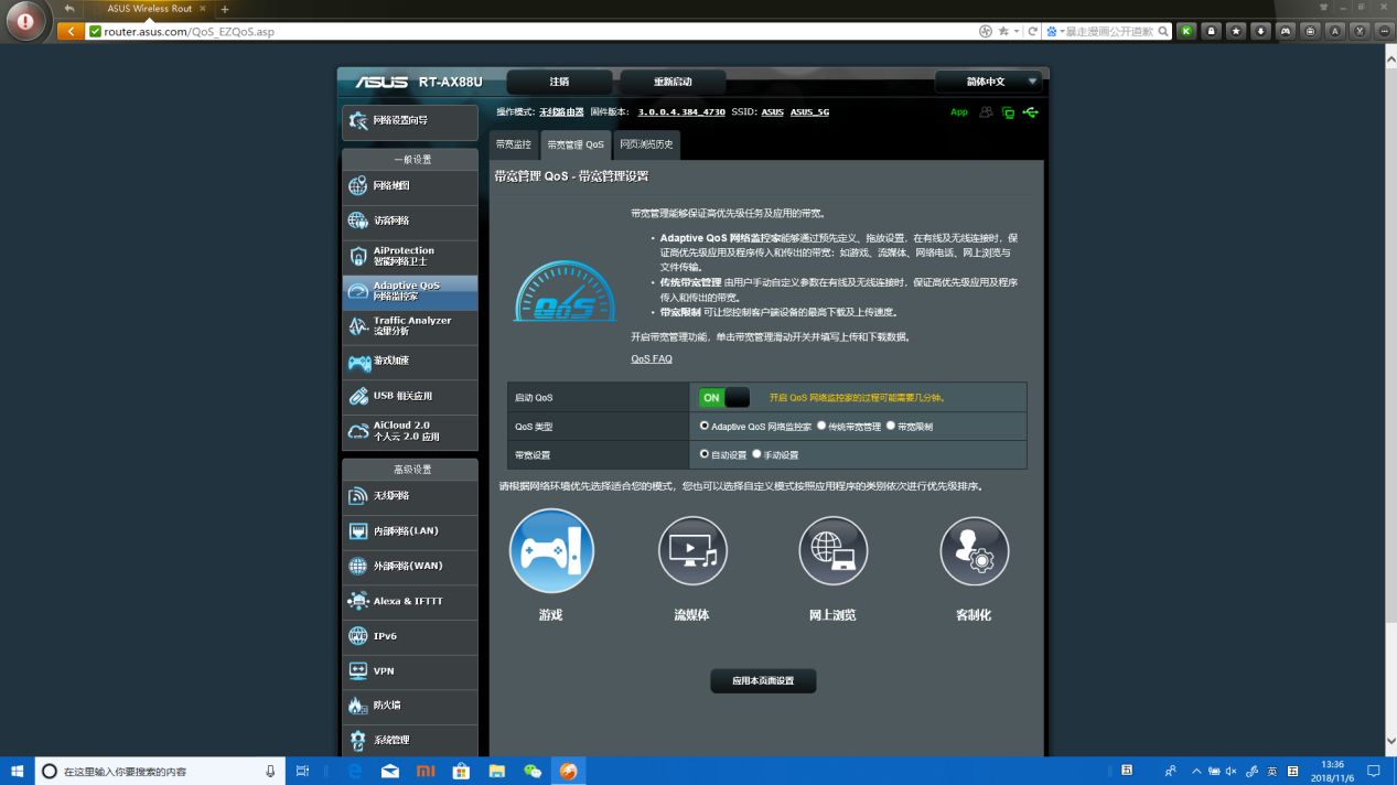 华硕RT-AX88U的路由设置界面为全简体中文版本,而且设置过程为每个功能一个界面的一步步独立操作,很顺畅也非常合理。