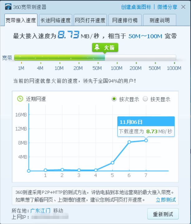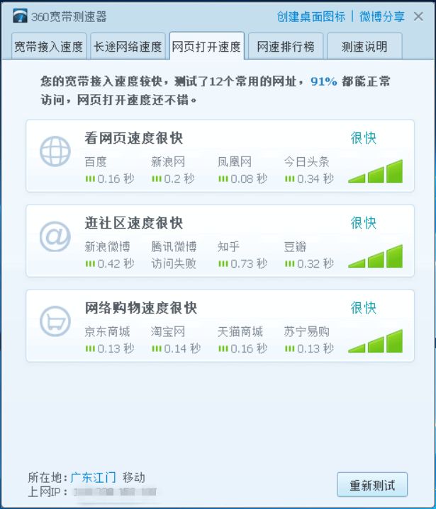 首先是采用360网速检测工具,测试RT-AX88U在有线状态下的测速,我采用的是网通主力网线100M端口。再使用笔记本无线测试网页速度,都很理想。
