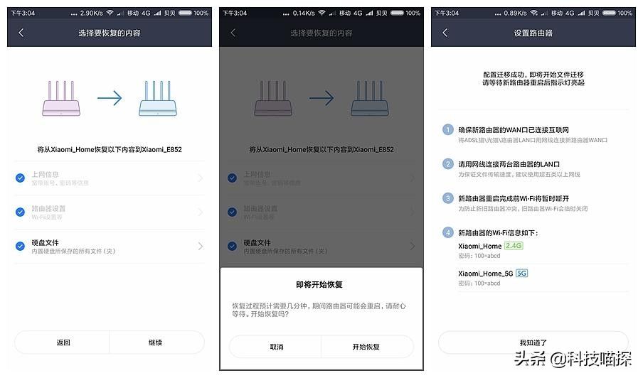 每一部都有贴心的提示,转移操作非常的简单,这样转移就不用登陆新路由器里经行各项繁琐的配置了。