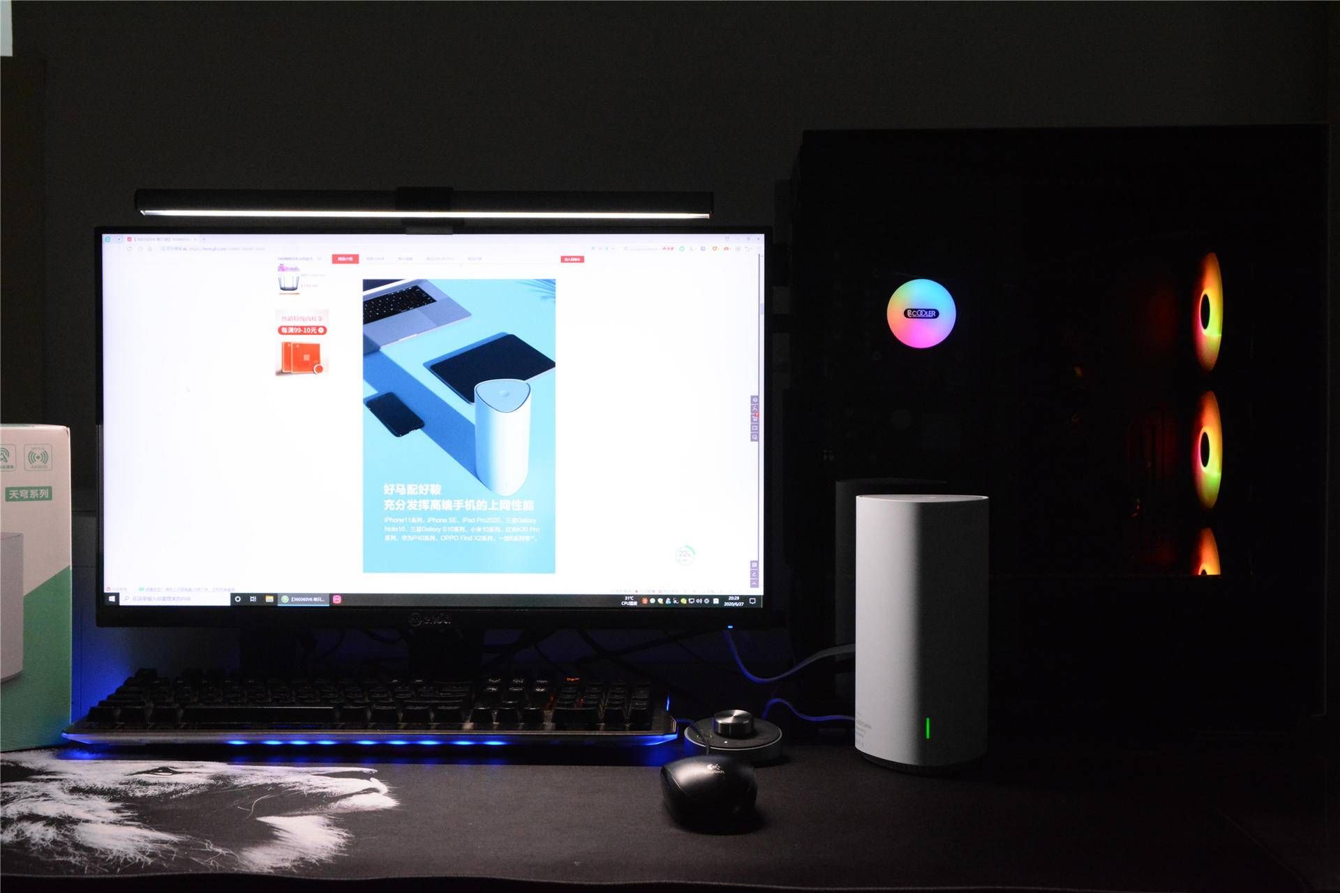 台式机没有无线网卡,那就放在附近直接用网线给电脑提供网络。