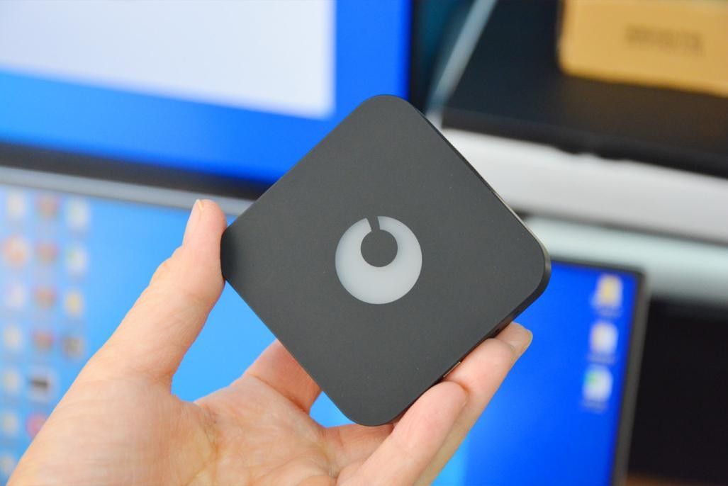 外观上,蒲公英X1比较小巧,仅有一张名片大小,厚度也仅比手机稍厚一点。整体黑色外观,正面中间LOGO和指示灯融为一体,背面是产品的硬件信息。