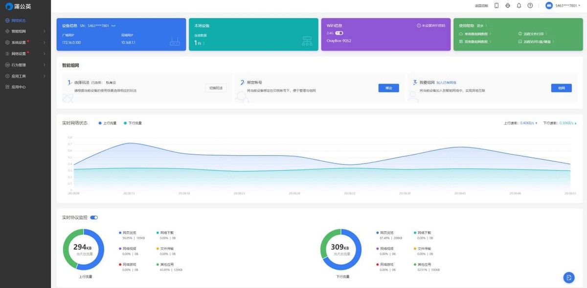 蒲公英X1的使用非常简单,把设备通电,连接到家庭路由上,等到路由器的指示灯显示白色长亮表示自动联网成功。下面进入路由器后台进行简单设置。