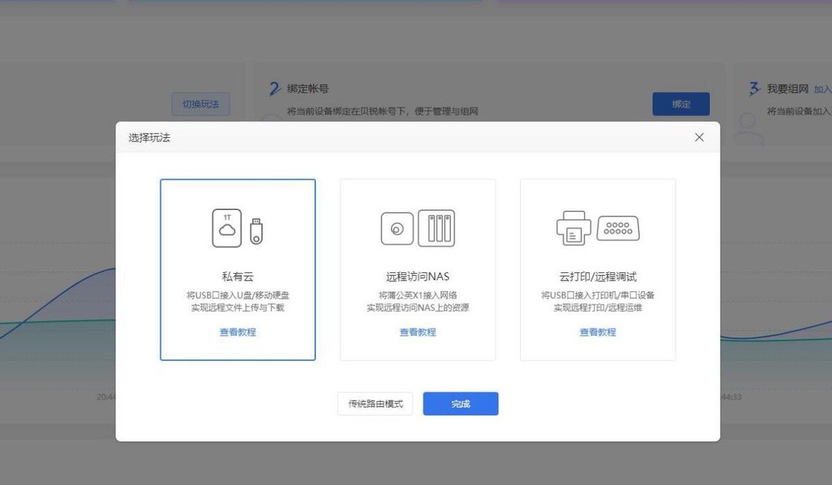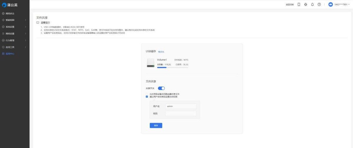 设备绑定后,直接把移动硬盘或优盘插到蒲公英X1盒子的USB接口上。然后,根据蒲公英云管理后台的提示,建立智能网络,这样就能够正常使用这项功能。