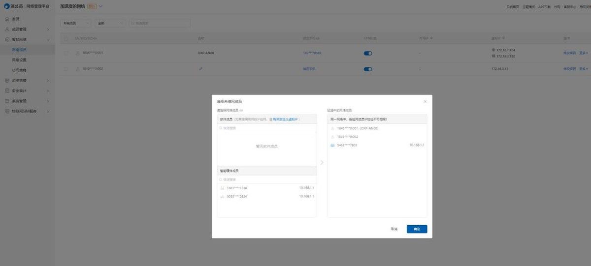 随后点击添加成员,选择路由器,输入SN码即可完成添加。
