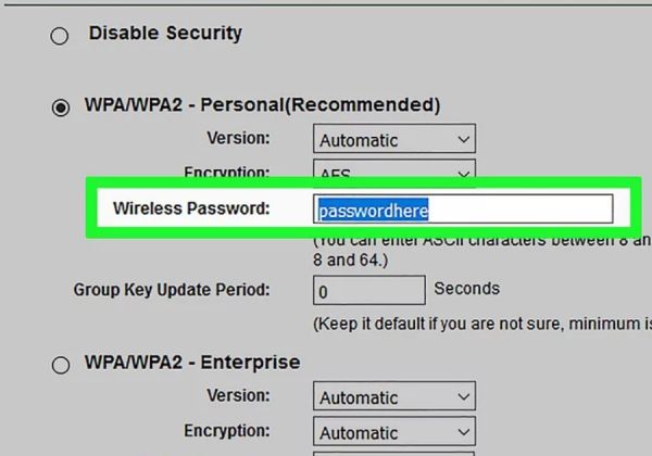 4、在绿色选区内输入设置无线局域网密码,选择复杂的密码组合,密码要同时包含字母、数字和符号。