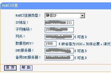 有固定IP地址的,在这里需要进行wan口设置,先选择连接类型为静态IP,IP地址和网关就是运营商提供的,子网掩码为255.255.255.0,DNS服务器也要根据当地运营商提供的地址来设置。