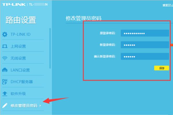 7、最后再点击修改管理员密码,输入该路由器默认的登录密码以后新的需要设定的密码以后点击保存按钮。