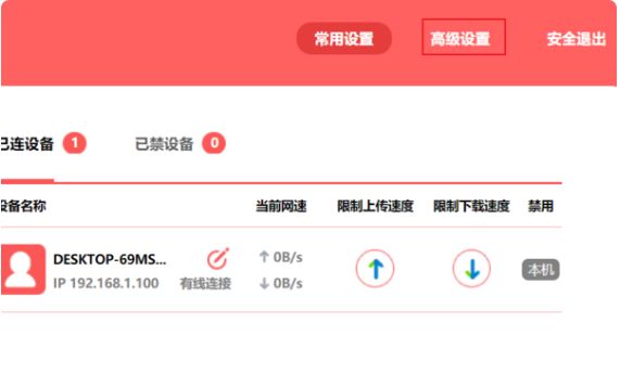 3、进入路由器后,点击界面右上角的【高级设置】。