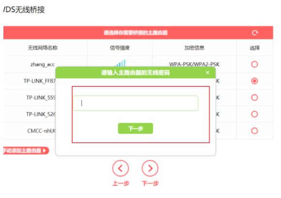 8、输入路由器的连接密码,输入完成后点击【下一步】。