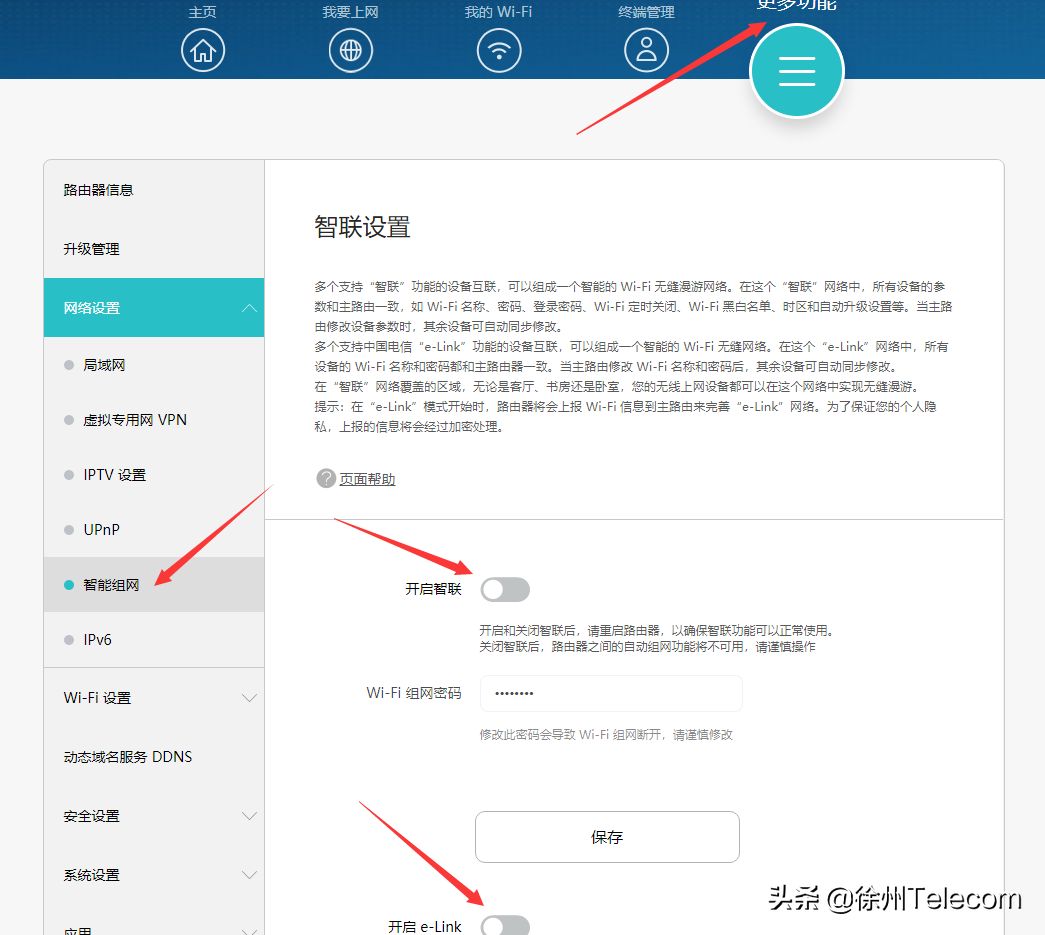 以华为路由器为例,进入管理页面,更多功能,智能组网,把开启智联和开启E-Link关掉即可,注:复位路由器以后先关掉这两个功能,再用网线连接猫和路由器
