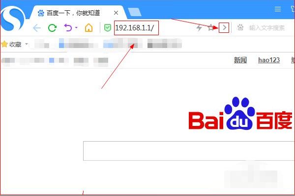 1、打开网页在地址栏输入192.168.1.1,点击右侧转到符号打开。