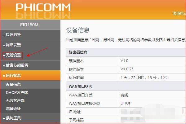3、进入路由器管理界面之后,点击左侧的“无线设置”按钮,进入无线网络的设置。