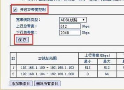 6、按上面操作,再添加IP地址段,这是限制网速的IP段,写上一个较小的带宽给它,这样就段IP的速度就不能超过限制值了。