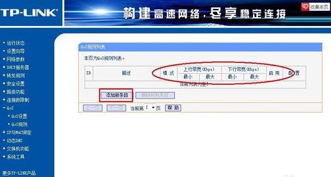 3、在左边功能目录中点击QoS下的“QoS规则”,打开“QoS规则”列表页面;