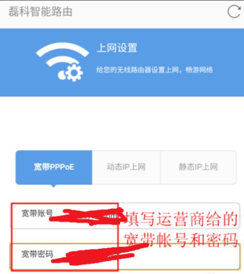 9、接下来输入宽带帐号和密码,就是电信、移动、联通等公司给的宽带帐号。