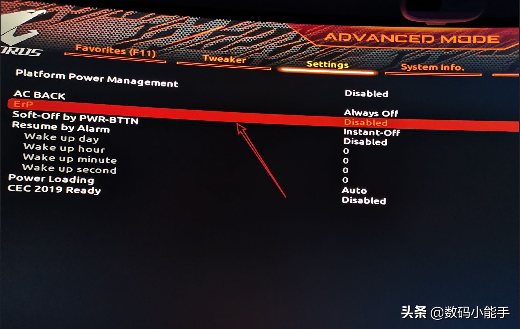 我的主板是技嘉Z390,也算是新款主板吧,所以需要在设置里面关闭“ErP"。也就是如图所示”Disabled"