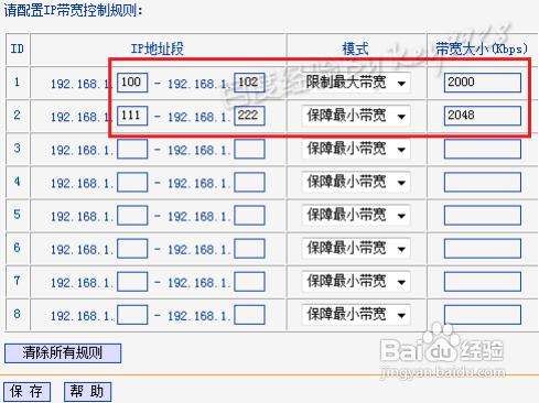 5、接下来在下在的IP地址段中详细设置各IP所用的带宽和控制方式:
