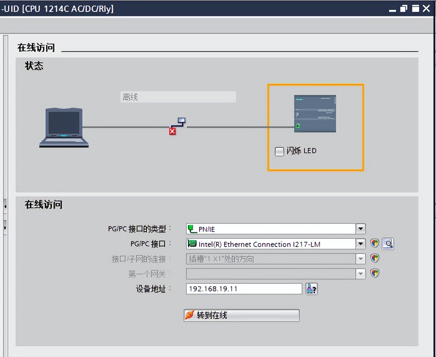 再度打开PORTAL网络设置,输入设备IP后在线联机,在线监控也可以成功。