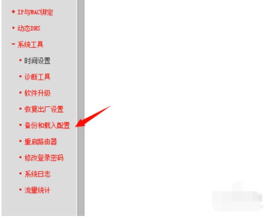 2、点击系统工具,再次点击备份和载入配置,然后选择备份配置文件。