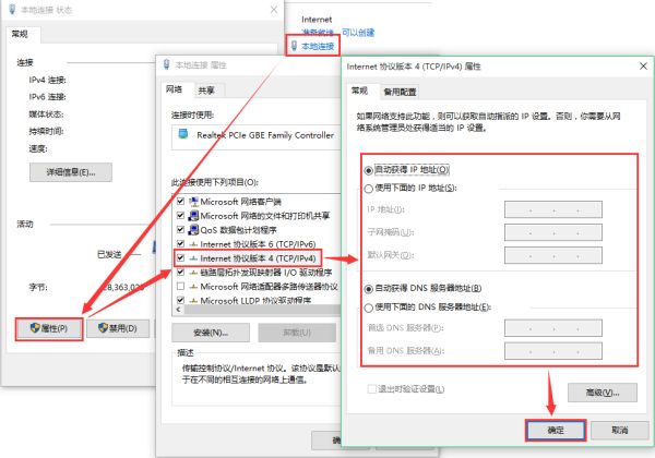 无线路由器连接电脑,电脑设置ip地址和dns服务器地址为自动获取,进入网络和共享中心 — 本地连接 — 属性 — internet 协议版本4 ,更改电脑ip地址和dns服务器地址设置为自动获取;