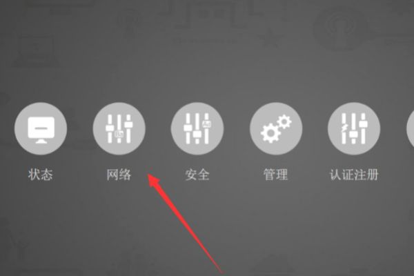 3、进入管理页面,可以看到状态、安全、网络、管理、帮助等选项,然后点击选择网络选项进入;