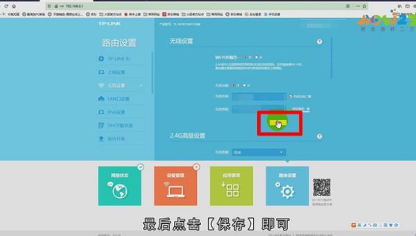 登录完成选择【路由设置】-【无线设置】,修改wifi密码后点击【保存】即可。