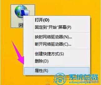 1、右键点击电脑屏幕上的“网络”,选择“属性”