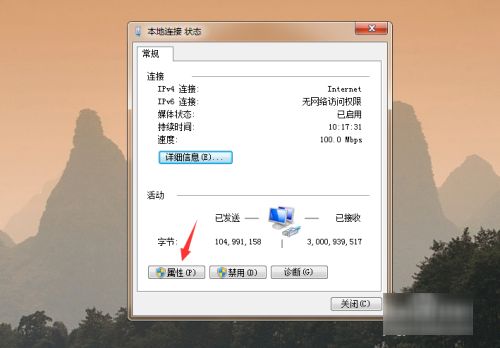 6、还有就是先进入到本地连接界面,点击【属性】,如图所示。