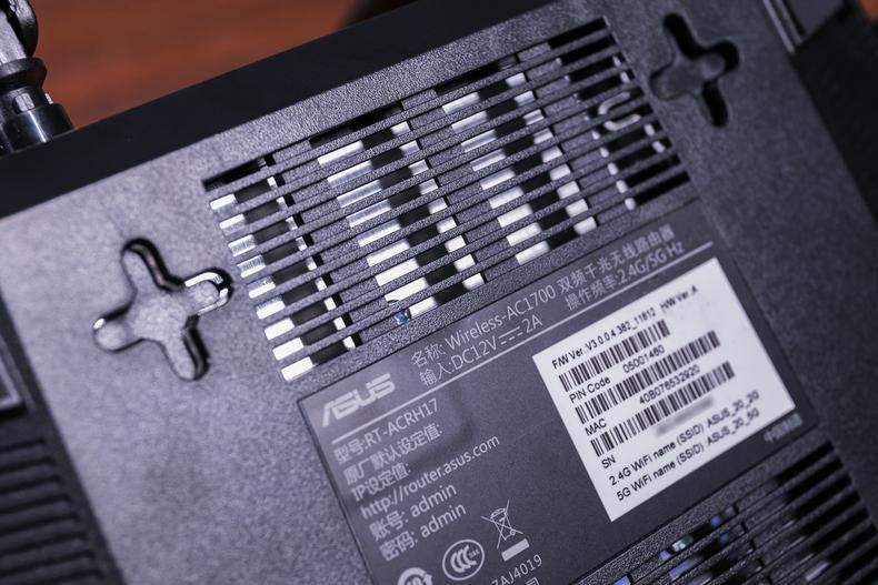 路由器作为现代家庭中7*24小时运作的设备,更需要有良好的散热,华硕在RT-ACRH17的设计中也充分考虑到了这点。看到其底部,大量的开孔保证了空气的流通;同时内部的主板底面包覆了铝板,均匀散热的同时亦隔绝了灰尘。通过底部的挂孔,你还可以将它挂在墙上。看完外观,现在让我们走进内在。