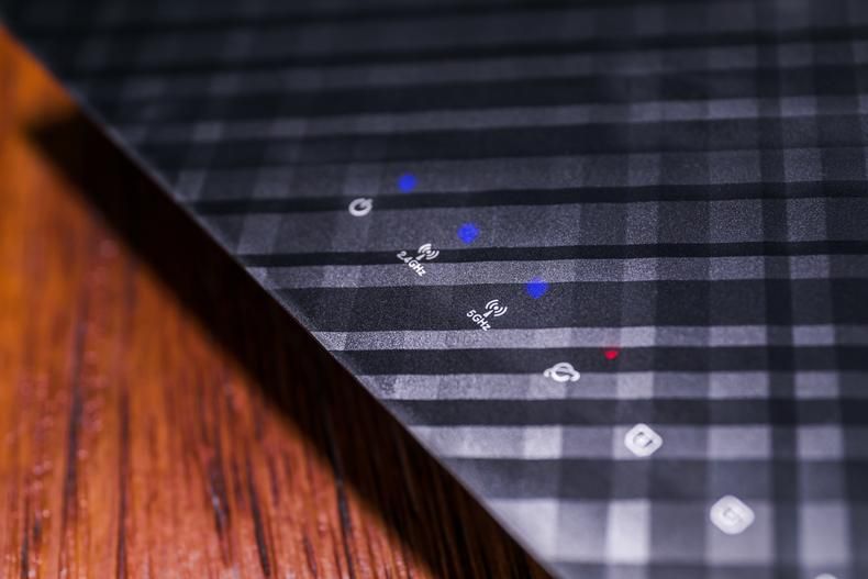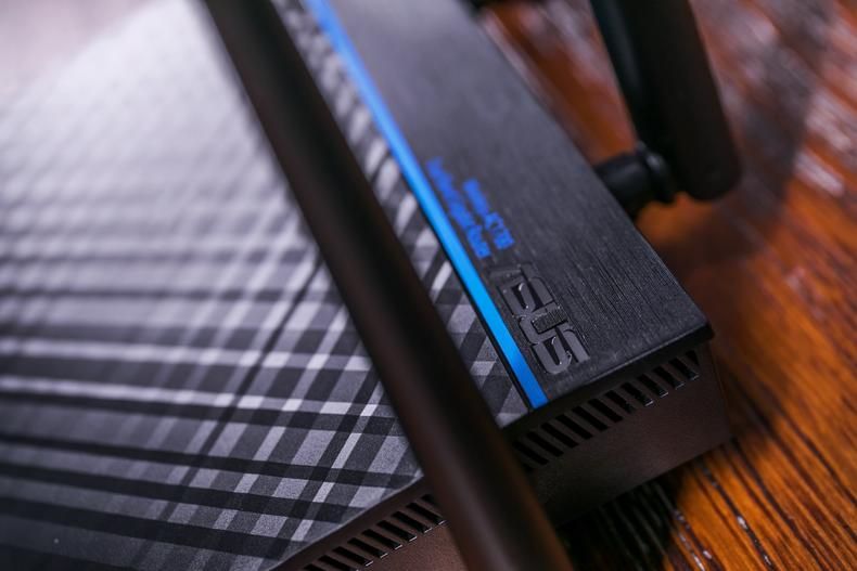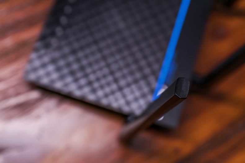当然,仔细观察,它也有很多的不同。顶面的菱形纹理之上,一抹象征速度的亮蓝贯穿机身,“双频”“1700M最大速率”的英文也印刻在此;而天线也增加到了四根,它们所带来的不仅仅是普通的信号增益,还支持最新的MU-MIMO技术,这点我们放在后面详谈。