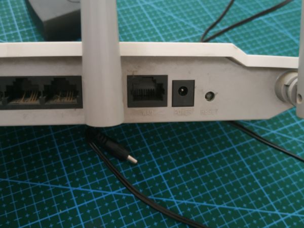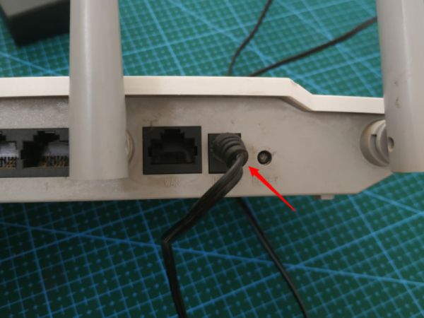 1、找到路由器的背面,将路由器的电源线拔掉。
