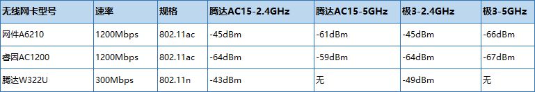我们的信号对比测试选择了3款无线网卡,在同样的位置分别对比了腾达AC15和极路由3的信号连接强度,具体如下图表。